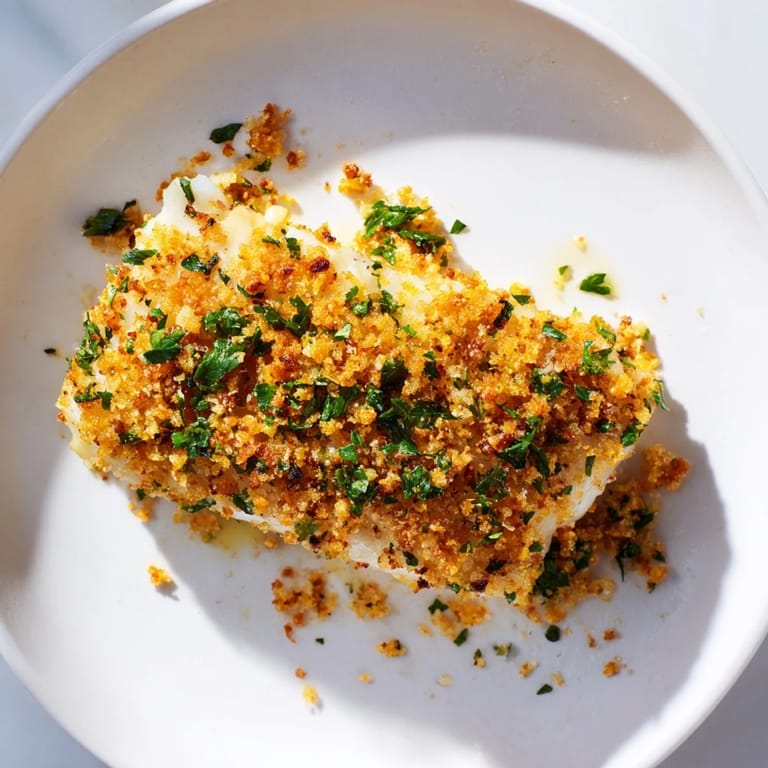 For extra tang add a teaspoon of Dijon mustard to the butter before mixing with the crumbs. Substitute haddock or pollock for cod if desired. Pairs well with steamed green beans or roasted potatoes, and a crisp white wine like Sauvignon Blanc.