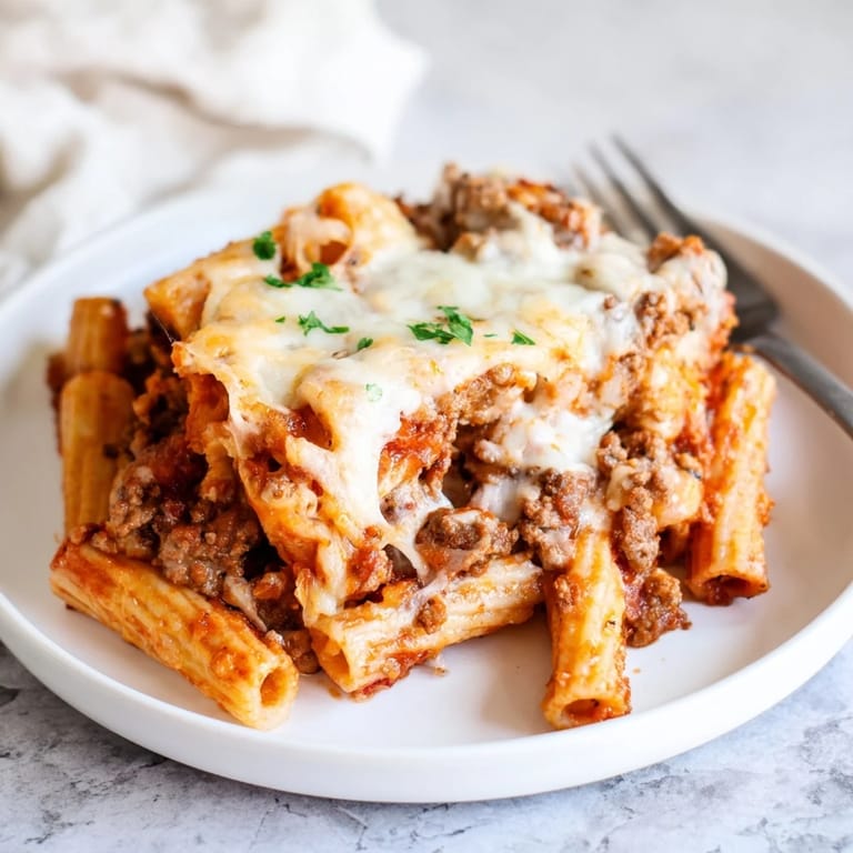 Save A comforting Italian-American pasta casserole featuring tender ziti, a rich meat sauce, and gooey melted cheeses—perfect for family dinners or gatherings.