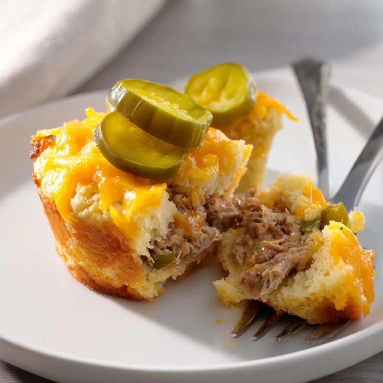 Save Savory muffins filled with tender BBQ pulled pork and tangy pickles make for a unique and fun appetizer or snack that will surprise your guests.