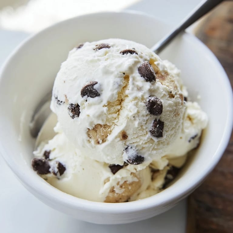 Save A creamy, protein-packed ice cream featuring whipped cottage cheese and bursts of edible chocolate chip cookie dough, perfect for a guilt-free frozen treat.