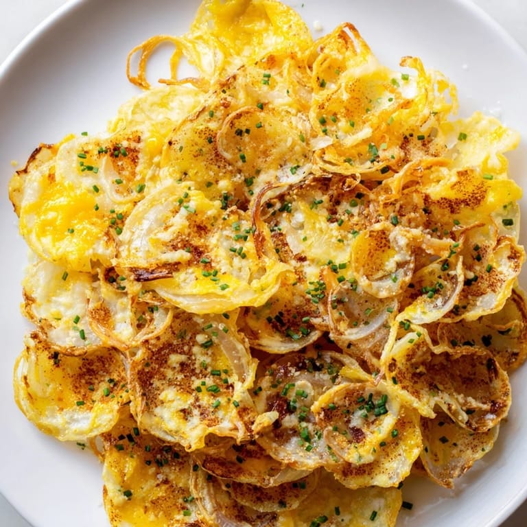 Save Last Tuesday, I was staring at a block of cheddar and wondering why I never used my air fryer for anything beyond frozen fries when it hit me—what if I just melted cheese into thin, crispy wafers and layered them with onions? Twenty minutes later, my kitchen smelled like a French bistro, and I was holding the most addictive, golden chip I'd ever made. They vanished in minutes.
