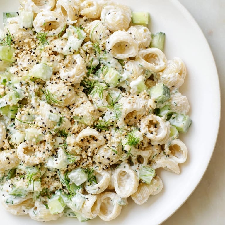 - Add the cooled pasta cucumber green onions and fresh dill to the dressing then toss with a light hand to coat everything without mashing the cucumber.