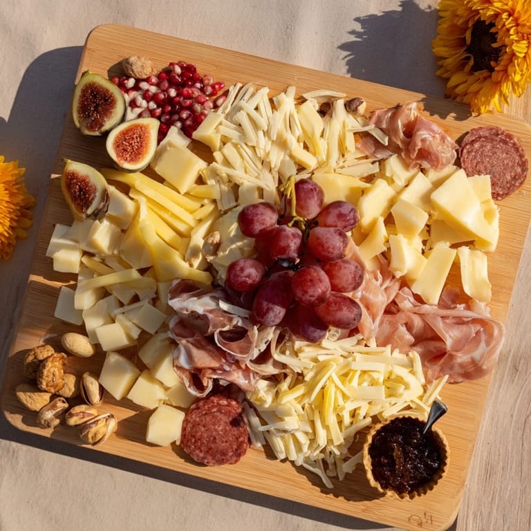 - Fresh Fruits: 1 bunch red grapes, 1 ripe pear, sliced, 1 ripe apple, sliced, 1 handful fresh figs, halved (or dried figs if out of season), 1 handful pomegranate seeds