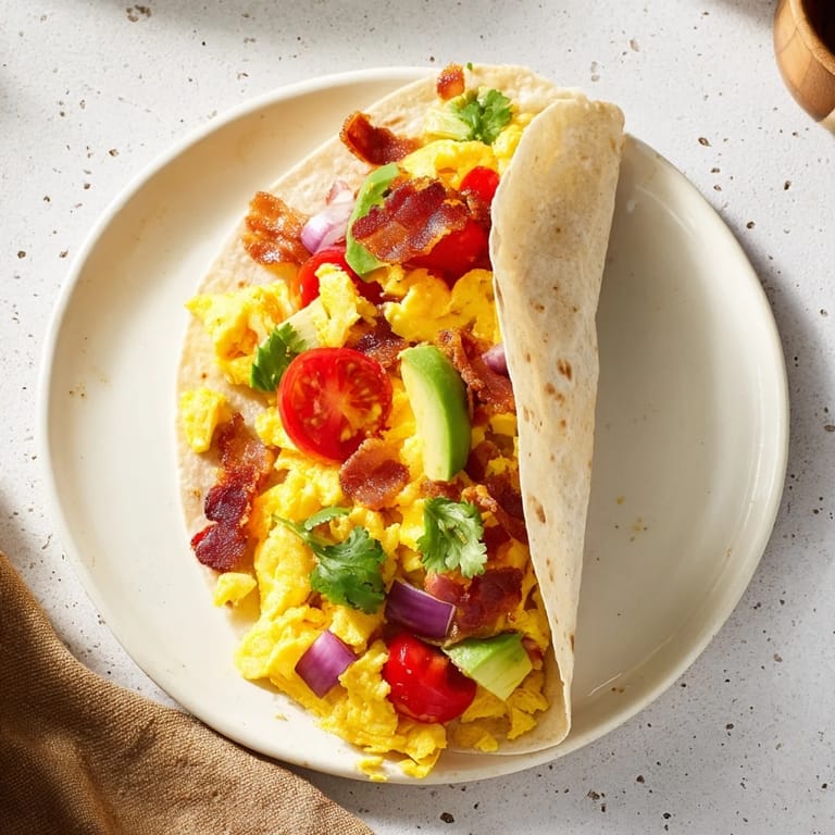 - Lay each tortilla flat. Divide the scrambled egg mixture among the tortillas. Top with crumbled bacon, avocado slices, and cilantro if using.