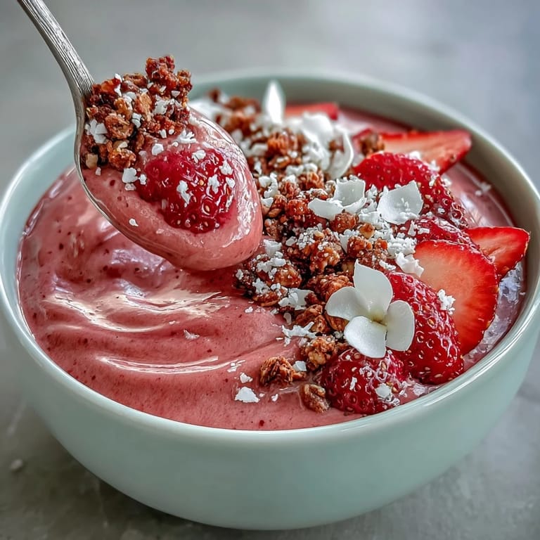 Save Celebrate friendship and flavor with this vibrant Galentines Brunch Strawberry Smoothie Bowl with Granola. This refreshing dish is the perfect centerpiece for a festive brunch with friends, combining a thick, creamy smoothie base with a delightful variety of crunchy and fresh toppings. It is as beautiful to look at as it is delicious to eat, making it an ideal choice for a special morning gathering.