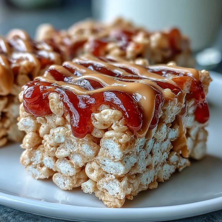 Save These bars were born from a desire to transform my post-workout protein routine into something actually enjoyable. I found myself dreading another shake, but still needing that protein boost. The solution came in a nostalgic flash—why not upgrade a childhood favorite? The combination of crisped rice cereal's satisfying crunch, peanut butter's rich creaminess, and the sweet-tart pop of jelly creates a perfect balance that satisfies both nutritional needs and snack cravings. Plus, they're sturdy enough to pack in lunch boxes or gym bags without falling apart.