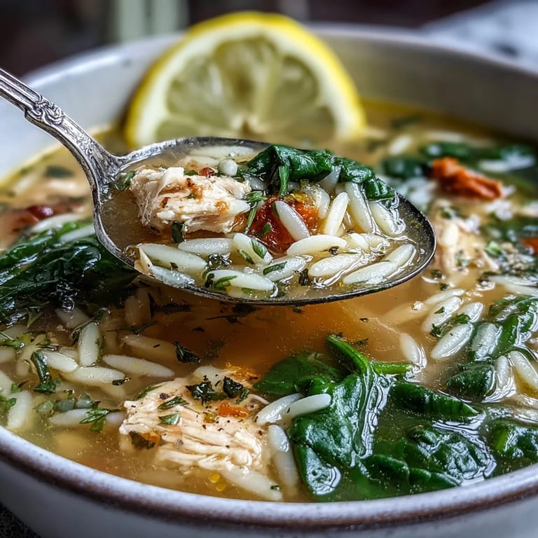 Save There is something quietly magical about a pot of soup simmering on the stove—the way it fills the kitchen with warmth, the way a single bowl can feel like a remedy for almost anything. This Lemon Chicken Orzo Soup with Spinach is exactly that kind of dish. Bright with citrus, hearty with tender chicken and delicate orzo pasta, and lifted by a handful of fresh spinach, it is a Mediterranean-inspired bowl of comfort that works just as beautifully on a cool autumn evening as it does on a breezy spring afternoon. Whether you are cooking for family, meal-prepping for the week, or simply craving something nourishing and deeply satisfying, this easy, dairy-free soup delivers every single time.