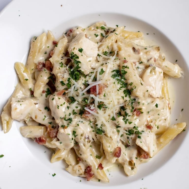 Save A creamy flavorful pasta dish featuring tender chicken crispy bacon and a homemade ranchinfused sauce tossed with penne. Perfect for a comforting weeknight dinner.