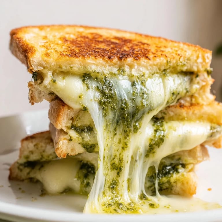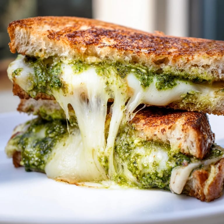 Save My roommate Sarah walked into the kitchen at midnight and caught me hunched over the stove with a fork, trying to fish a fallen cheese slice out from between the burner grates. That was the first time I made pesto grilled cheese and dramatically underestimated how much cheese would actually stay inside the sandwich. We ended up scraping what we could onto the remaining pieces and eating them standing up, tomato soup in mugs, while the oil on the stovetop smoked gently.