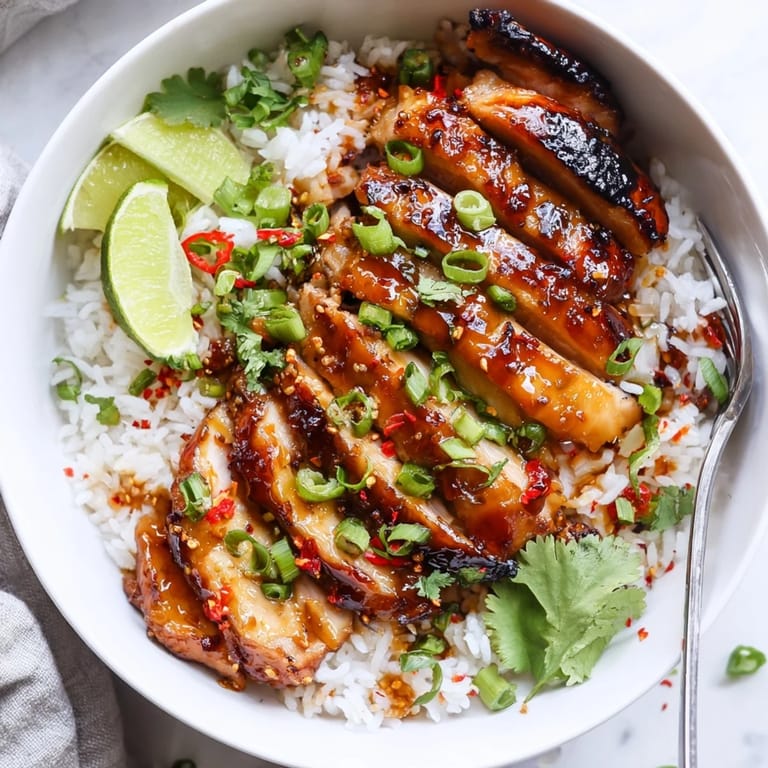 Save This Sweet Chili Chicken Bowl with Coconut Lime Drizzle is a quick and easy dinner idea that feels like your favorite takeout but tastes even better. It's an irresistible blend of sweet, spicy, and creamy with charred chicken glazed in sweet chili sauce, fluffy jasmine rice, and a cool, tangy coconut lime drizzle. This healthy, flavor-packed bowl is perfect for busy weeknights, quick lunches, or when you're craving something bold and comforting. It's a go-to recipe for easy meals, weeknight food ideas, and vibrant, crave-worthy dinners.