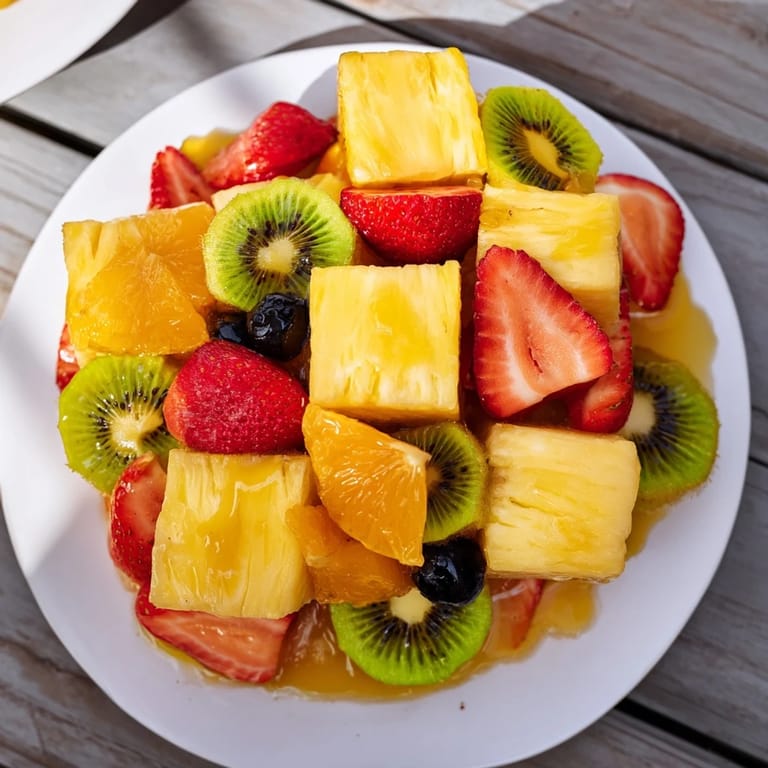 Save A vibrant and refreshing fruit salad served in a pineapple boat, perfect for summer gatherings or as a show-stopping brunch centerpiece.