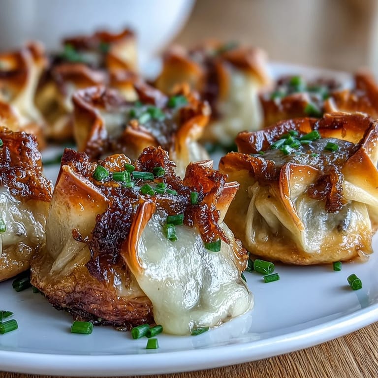 Save I discovered these dumplings by accident on a rainy Tuesday when I was reheating leftover French onion soup and had a stack of dumpling wrappers staring at me from the fridge. The idea hit me midway through my first spoonful—what if I could trap all that golden, caramelized sweetness inside a crispy pocket? Three hours later, my kitchen smelled like a Paris bistro had collided with a dim sum cart, and I knew I'd stumbled onto something worth repeating.