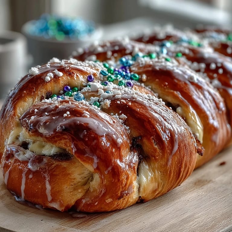 Save There's something magical about a King Cake Braid—the way golden, buttery dough transforms into an intricate lattice, cradling a tangy-sweet lemon cream cheese filling that oozes indulgence with every bite. This festive showstopper isn't just a dessert; it's a celebration wrapped in purple, green, and gold. Whether you're honoring Mardi Gras traditions or simply craving a bakery-worthy treat that looks as stunning as it tastes, this braided beauty delivers joy in every slice. The combination of citrus brightness and rich cream cheese against pillowy yeast dough creates a flavor symphony that will have everyone asking for seconds.